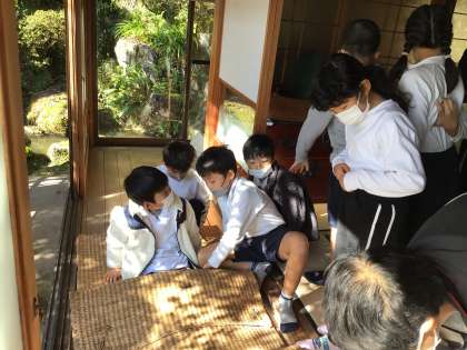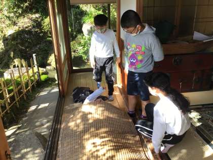 「むしろ」の布団が大人気。担任の先生も私も体験させていただきましたが、案外温かかったです。子供たちからは冬はアウトだあという声も。