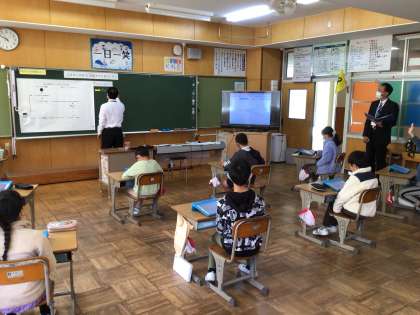タブレットの思考ツールを使って、考えたアプリのより良い伝え方について発表しました。また、教育委員会の先生が、授業の様子を見にこられました。