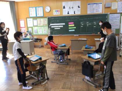 今日は学校訪問で、教育委員会の先生方が幸海っ子の学習の様子を見にきてくださいました。普段通りに元気いっぱいに学習する様子やお互いをいたわり合う姿、先生方の子供へのかかわりなどを通して、「温かい雰囲気の学校ですね」と褒めていただきました。