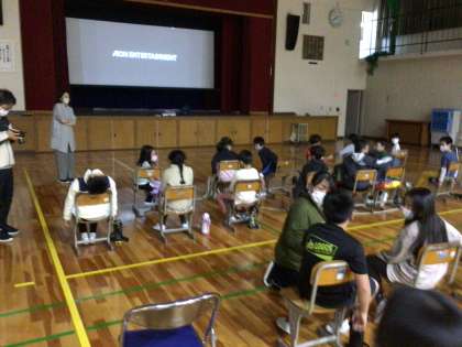 今日は5、6時間目に、体育館で全校映画鑑賞会がありました。豊田市も原作の中に出てくる「神在月のこども」という映画です。保護者の方も見に来てくださいましいた。教務主任の先生が原作本が寄付されたことを伝えると、すぐに、「どこにあるんですか?」と尋ねる興味津々の子供たちでした。ふるさとへの思いや家族への愛など、いろいろなメッセージが胸に沁みました。