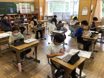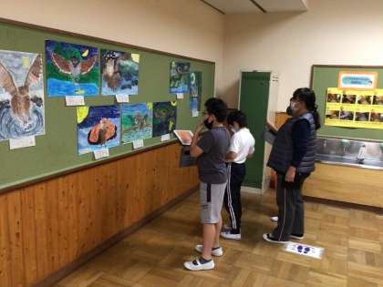 読書感想画の鑑賞をしました。鑑賞して感じたことをタブレットに書き込みました。