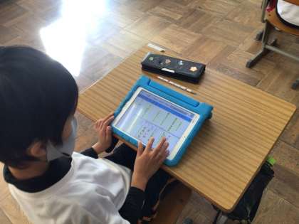 「話す練習をしよう」の課題で、タブレットを使って、話す内容をまとめました。