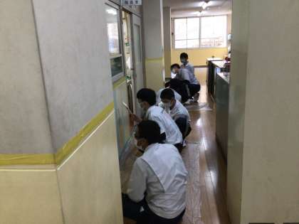 お弁当を食べた後も、塗装作業は続きます。確認係の学生さんがいて、チェックしながらリカバリーしていました。さすがですね。全て自分たちで段取りを考えて行なっている役割です。