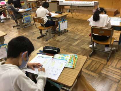 3年生の子供たちは学んだことを定着させるために、ドリル学習をしました。九九のスピードが速くて、あっという間に1ページ終わっていくので、感心しました。集中力もあります。