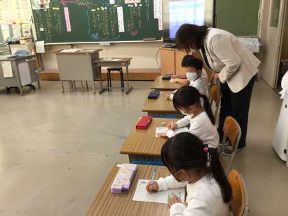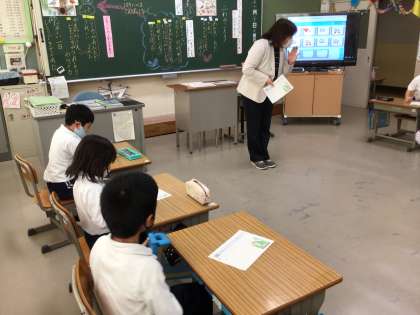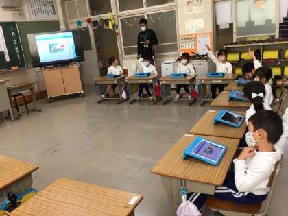 今日は一年生の研究授業でしたが、幸海小学校では全教員が授業を公開し、研修をしています。問いをもち、主体的に学び合う児童の育成を目指し、ICTの活用に積極的に取り組んでいます。
