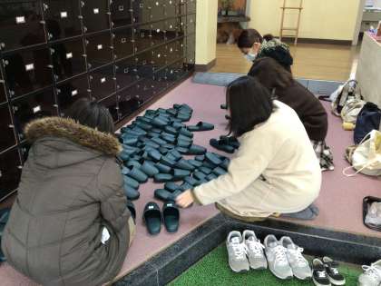 ちょボラの皆さんがなわとび大会の後、残ってくださり、新しいスリッパの番号を作成してくださいました。玄関の寒い場所に座って作業をする皆さん。こちらのエアコンの部屋でどうぞと伝えるも、このままやりますから!と勢いよく作業を進めてくださいました。いつもいつもありがとうございます。