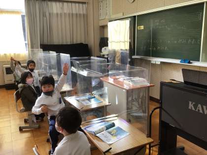 1年生は音楽室でドレミの音の役割を決めていました。演奏をするのかな。ドが一番人気で譲り合う姿もありました。