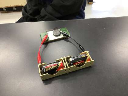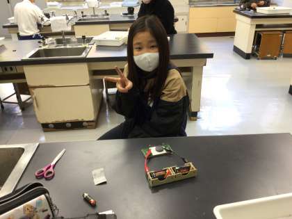 電磁石の授業で、モーターをエナメル線を使って作りました。全員まわりました。