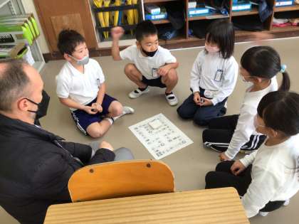 今日は1年生もブライアン先生と一緒に英語のアクティビティを楽しみました。