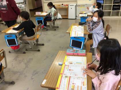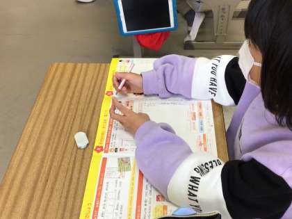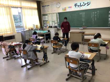 2年生は、書写の時間に、葉書の書き方の練習をしていました。郵便局からのテキストを使って、それぞれに枠に、相手の住所や名前、自分の住所や名前を、丁寧に書き込んでいきます。学校に届くのを楽しみにしていますよ。