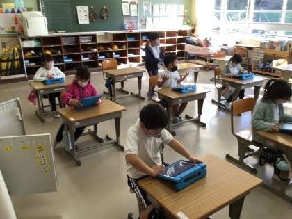 冬休み前の学活がありました。タブレットを使った、ビンゴ大会もしました。