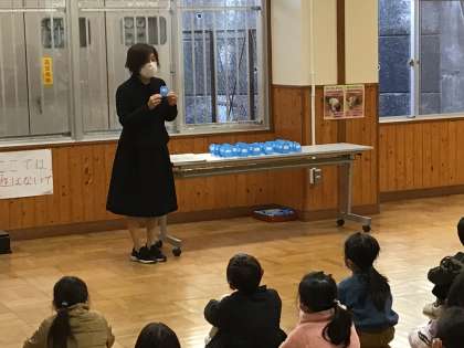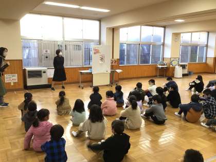 全校児童がそろって、集会が行われました。校長先生から、今年の目標を決めるように話がありました。
