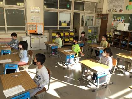 はじめての書き初めで、みんな集中して書き始めました。