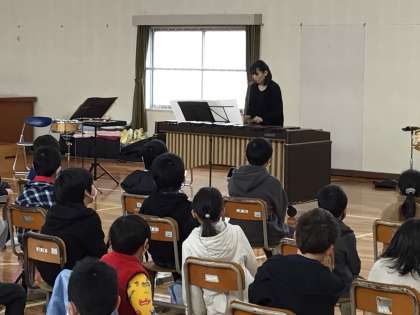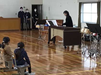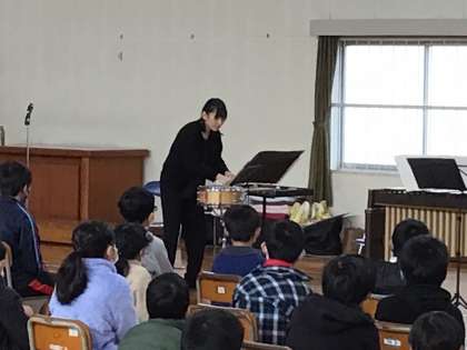 アウトリーチで、打楽器演奏者の方がみえました。いろいろな打楽器を演奏していただきました。