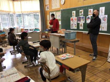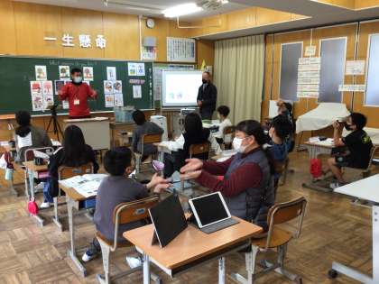 5年生はブライアン先生と一緒に外国語の学習をしました。