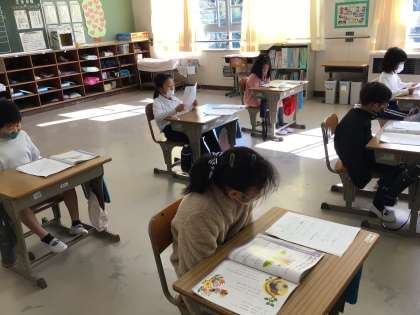 2年生の教室では音楽の学習で、オリジナルの歌を歌っていました。