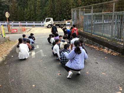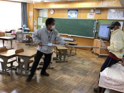 今日は不審者が学校に侵入したという想定で、安全確保の訓練を行いました。3年生の教室に公務手さんが扮した不審者が現れ、複数の職員が刺股を持って追い詰めるうちに、速やかに避難した子供たちでした。