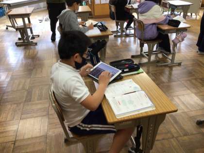 円の性質についてタブレットを使って、学習しました。