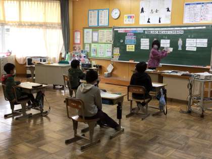 昨日4年生は保健の授業で、成長に伴う身体の変化について学習しました。養護教諭の先生が図やカードを使って分かりやすく考えられるようにしました。
