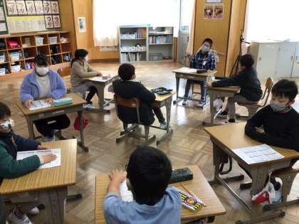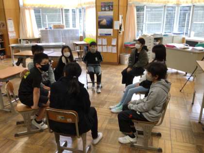 毎週木曜日の朝の活動は、「名人タイム」です。その日のお題について話し合います。