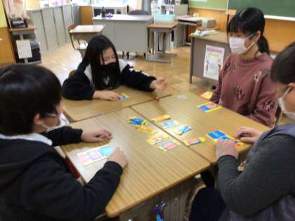 カードゲームクラブでは、家から持ってきたカードゲームで楽しんでいました。出た数に合わせてカードを集めていくゲームです。誰が勝ったのかな。