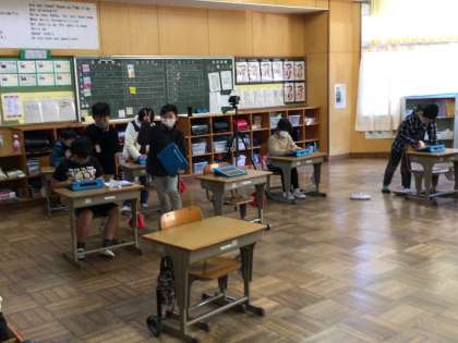 3年生の子供たちは、本番さながら、学習発表会でのプレゼンをビデオに撮ってもらっていました。