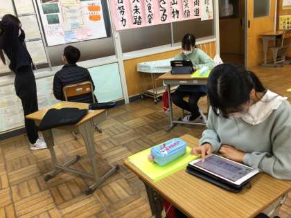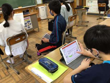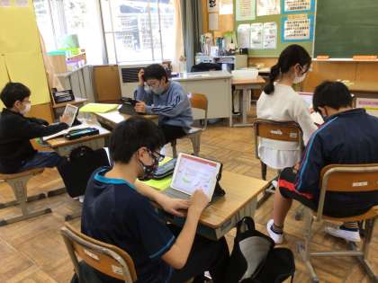 6年生の子供たちは総合的な学習で追究してきた街の未来について考えたことを学習タブレットを活用し、図や写真を取り込みながらプレゼン資料にまとめていました。先日の幸海クラブとの交流会を通して、さらに考えを深めているようです。頼もしい!