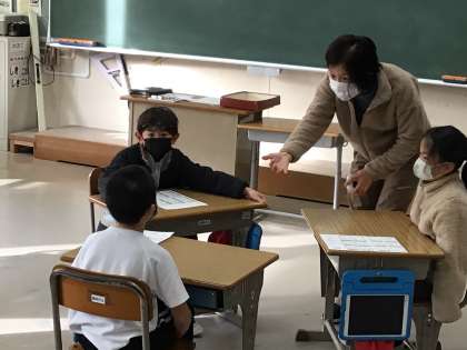 毎週、木曜日の朝の時間は、名人タイムです。その模範授業を校長先生が2年生のクラスで行いました。