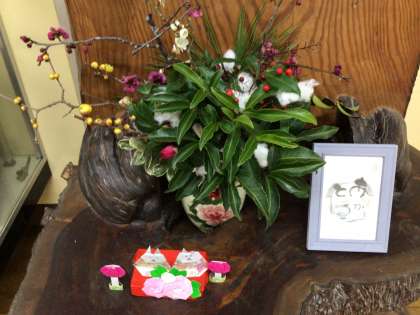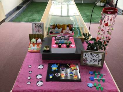 登校した一年生の子がクジャクかなあと言って、おひなさま飾りを見ていました。