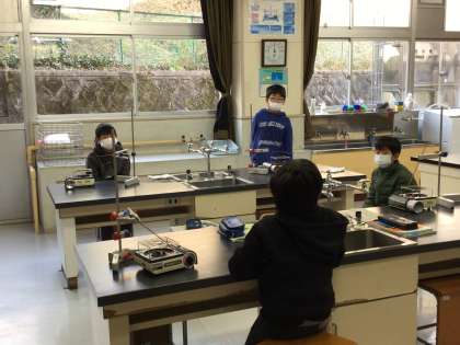 鉄の棒の温める場所を替えて、ろうの溶ける様子を観察しました。