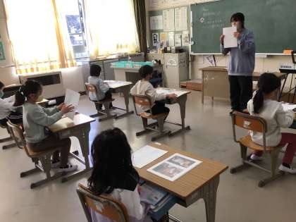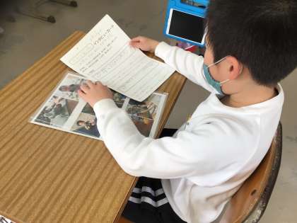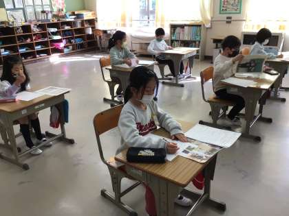 2年生の教室では、机の上に小さかった頃の写真を載せて授業が始まりました。
