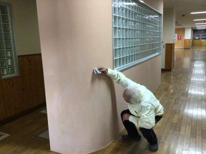 校内整備員さんが汚れた壁を隅々まで掃除してくださいました。みんなが気持ちよく過ごすためにも大切にしてくださいね、と校務主任の先生からお話がありました。