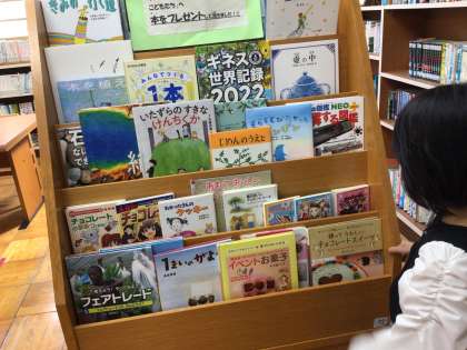 すでに多くの子が本を借りているので、図書館にはあまり人がいませんでした。昨日に引き続き、文化委員会の二人がお昼の放送で、本の紹介をしてくれました。