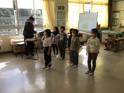 学習発表会の練習をしました。元気いっぱい、大きな声で練習しました。