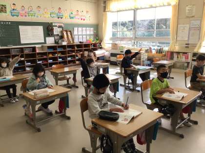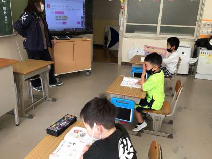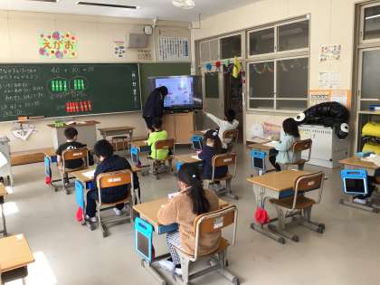一年生の子供たちは算数の「大きな数の計算をしよう」に取り組んでいました。