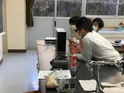 4年生では理科室でものの温まり方について実験をしている最中でした。