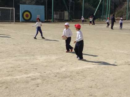 1年生と2年生は合同でタグラグビーをしました。