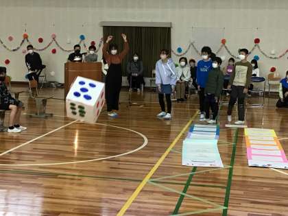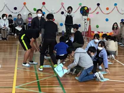 6年生と各学年が準備した交流ゲームが始まりました。3、4年生が準備した交流ゲームです。