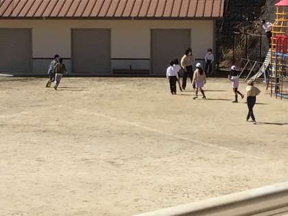 子供たちと一緒に鬼ごっこをしていました。スポーツ万能な先生ですが、子供たち相手の鬼ごっこは息が切れるようです。