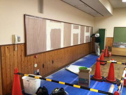 今回は、汚れの見られたワークスペースの掲示板を取り替えています。カビ防止の効果がある掲示板です。