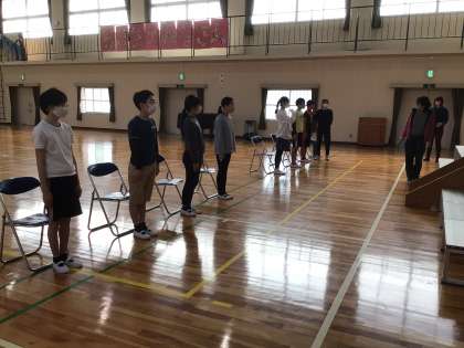 今日は教務主任さんの指示で、起立や礼、着席の練習をしました。