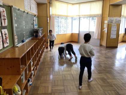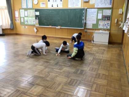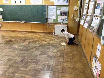 4人で頑張って教室内の荷物を出して、床の水拭きをして、ワックスがけの準備をしました。
