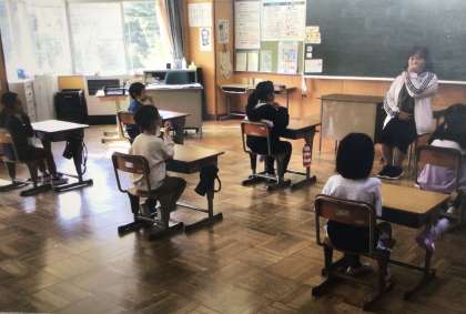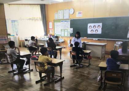 みいちゃんやこんちゃんの声かけに合わせ、こぶしを口の前に置いて、息を確かめます。しっかりと息が出せたかな。まだまだ途切れ途切れだけど、これから授業でも活かしていきましょうね。