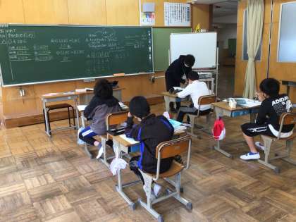 5年生の子供たちは算数の授業で小数点の位置を確かめる学習をしていました。10分の1になると、小数点はどちらのに動くのか、次々とと答えることができていて感心しました。先生が声をかけるとすぐに質問をする子もいました。粘り強く頑張ろうとする子供たちに拍手を送ります。