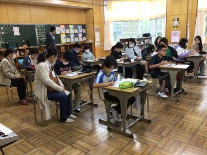 4月に入ってから、基本的にマスクの着用がなくなり、どの教室からも大きな挨拶や笑い声が聞こえています。今日はちょっとみんな緊張していたけれども、それだけおうちの人によいところを見せたかったのかなあって思います。子供たちの頑張りを共に認め励まし勇気づけていきたいと思います。学校と地域と保護者が共にチームとなってつながることで、子供たちは安心してまた一歩踏み出していくことでしょう。