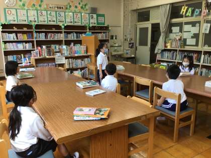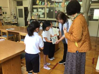 3年生は分類番号ごとに本を探して、みんなが読みたくなる本を見つけました。中を開いてじっくり見ながら友達が喜んでこんでくれそうね本を探す子供たちでした。たくさん本を抱えて学級文庫まで持ち帰りました。