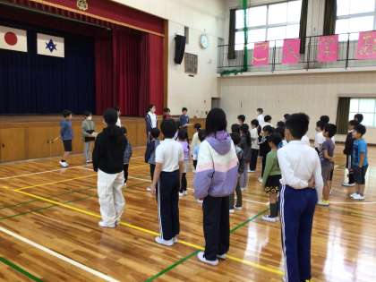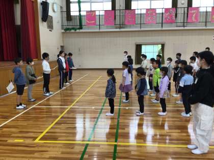 児童集会では、計画委員会が幸海っ子10の約束を伝えました。