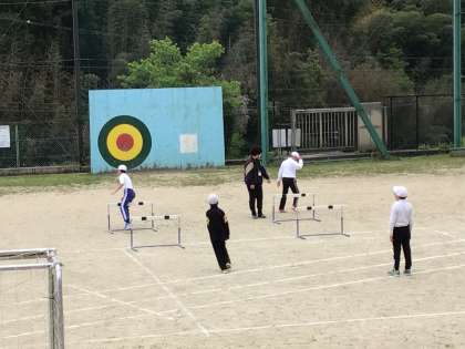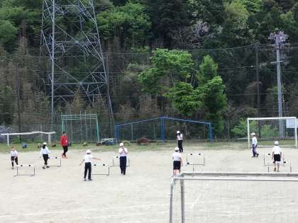 それぞれ個人で練習した後、ペアで確認をし合う練習をしました。50m走のように跳べるようになるといいですね。