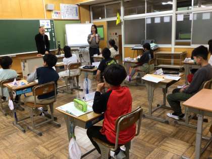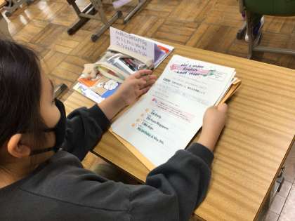 6年生はブライアン先生と一緒に英語で自己紹介の仕方を学びました。自分の好きなことを相手に伝えるためには、どんな言葉を選んだらよいのか考えながらの学習でした。
