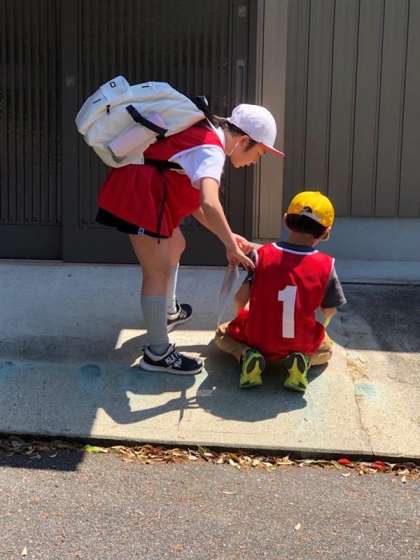 小さい子に声をかける6年生。リーダーの姿がありました。今日はとっても疲れたよね、きっと。ありがとう。